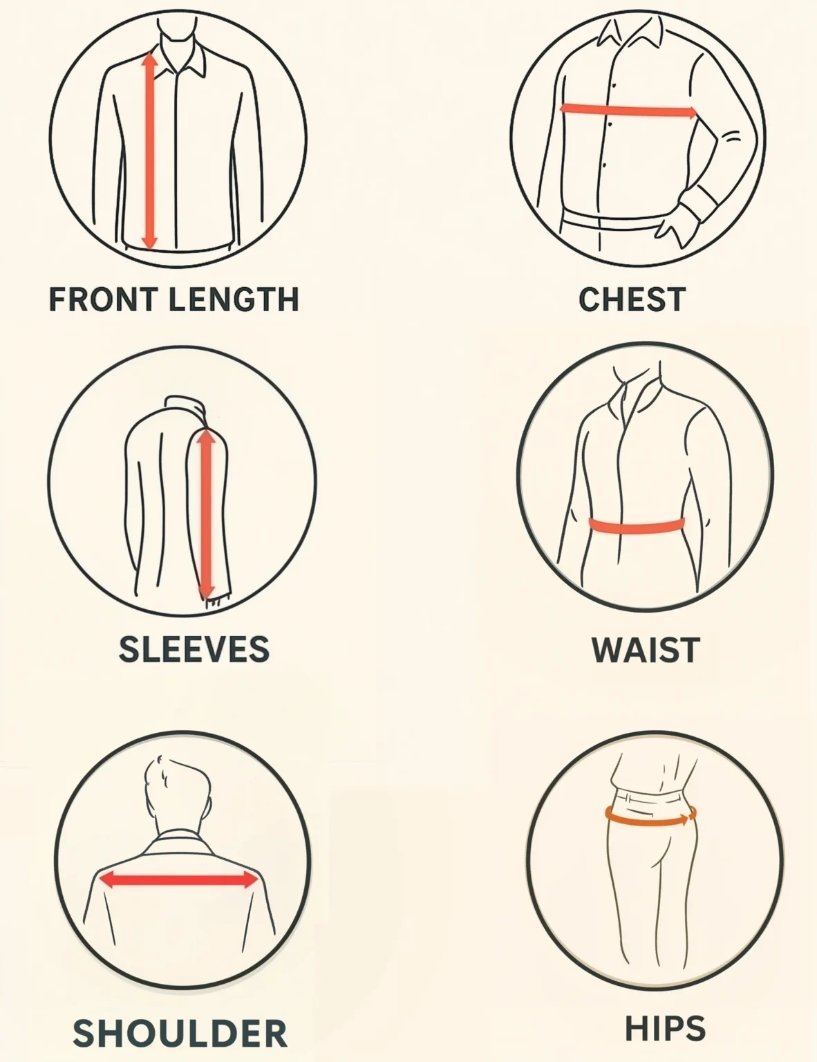 Tips: Measure over a T-shirt for best accuracy. If you’re between sizes, choose the larger size for layering comfort. Slight variation of ±0.5 inch may occur due to hand measurement.